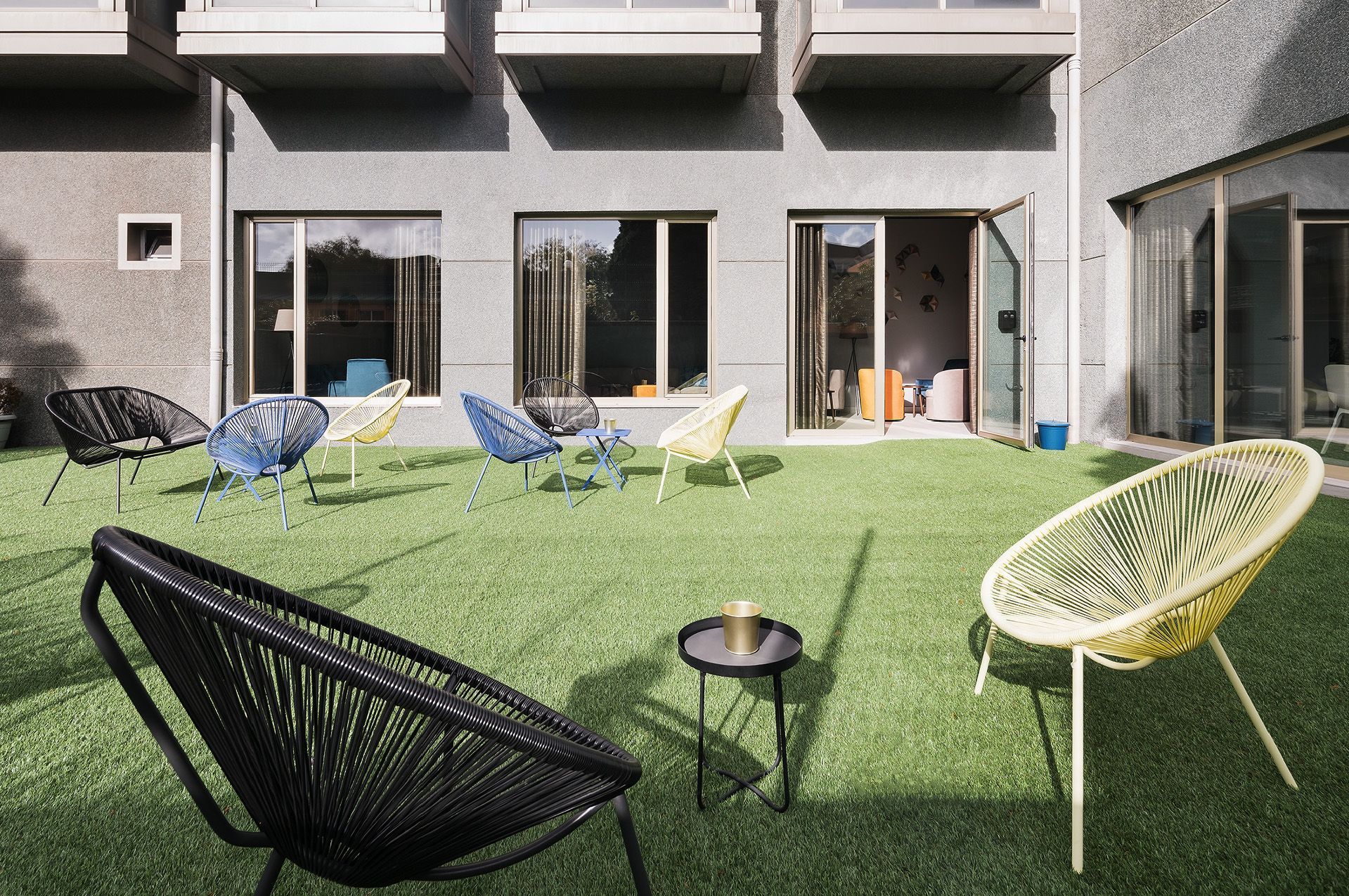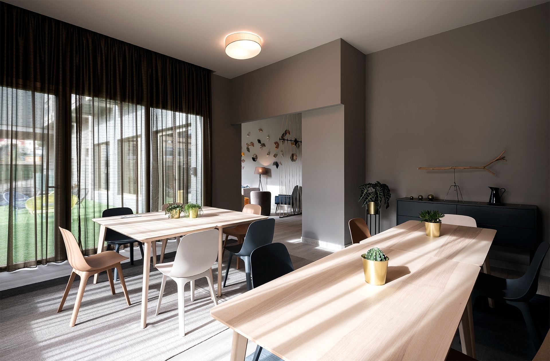 Disponemos de un amplio y luminoso salón con dos ambientes diferenciados: una zona de estar y una zona con mesas de trabajo. Acceso directo a terraza con mobiliario exterior. Espacio disponible para eventos, reuniones, actividades...